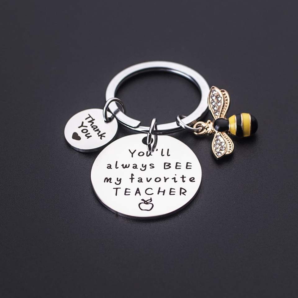 Teachers'Day Gifts Bee Keychain Appreciation Gift for Christmas Valentines You'll Always Bee My Favorite Teacher Metal Key Chain