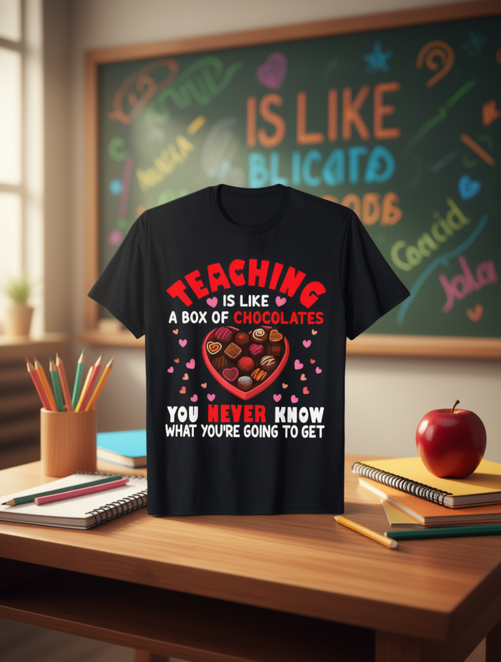 Insegnare è come una scatola di cioccolatini, maglietta per uomo e donna, 100% cotone, traspirante, girocollo, manica corta, regalo unisex