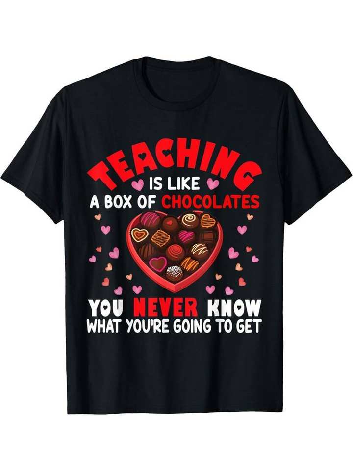 Teaching Is Like A Box Of Chocolates T-Shirt For Men Women 100% Cotton Breathable Casual Fit Short Sleeve Crew Neck