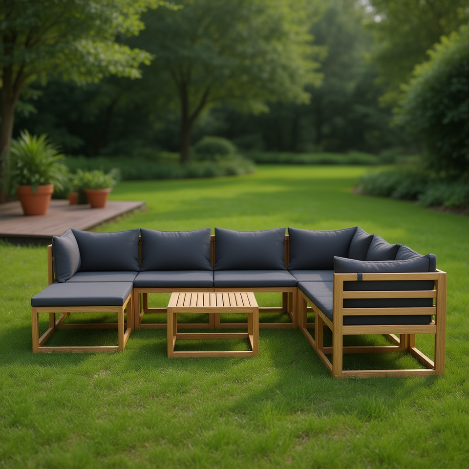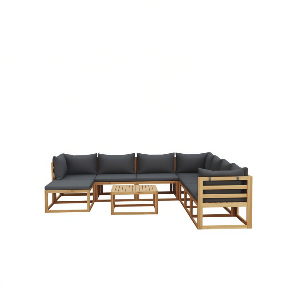 Set Lounge da Giardino in Teak 6 Posti Grigio Scuro Arredamento Esterno Contemporaneo