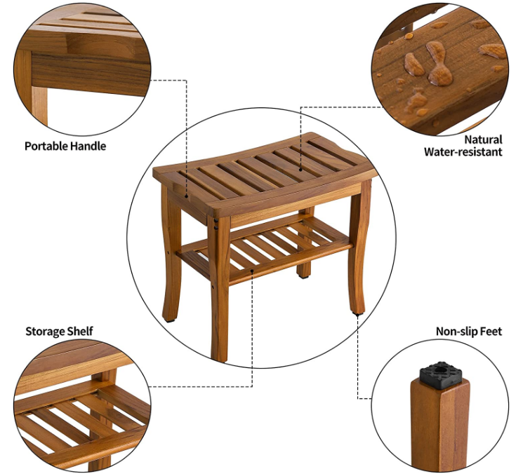 Legno di Teak bagno panca doccia con ripiano di stoccaggio sgabello in legno per le scatole di legno artigianato muro segni