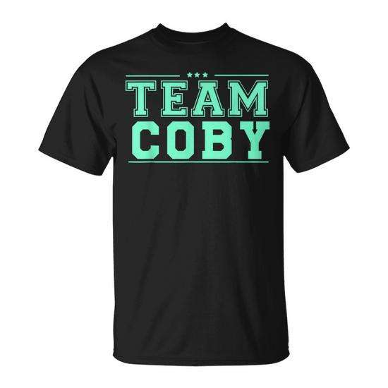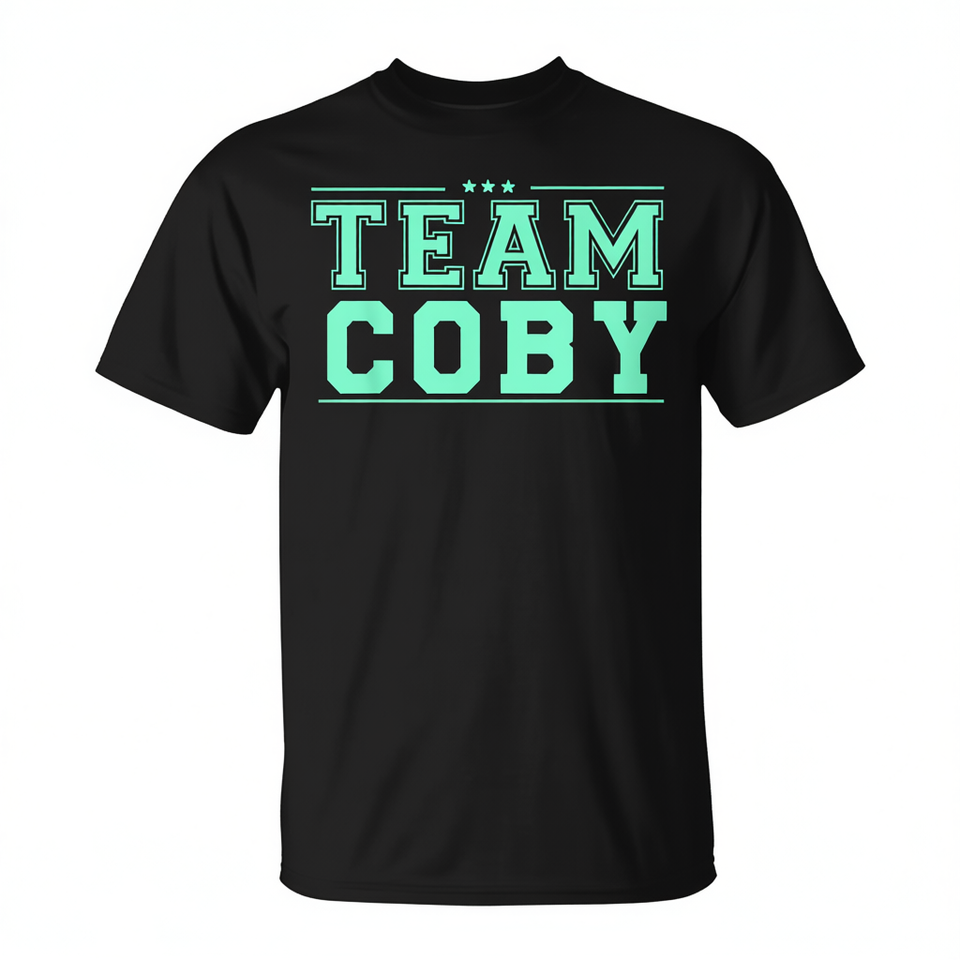T-shirt Team Coby Nera con Testo Verde Menta Unisex Girocollo Manica Corta Abbigliamento Promozionale
