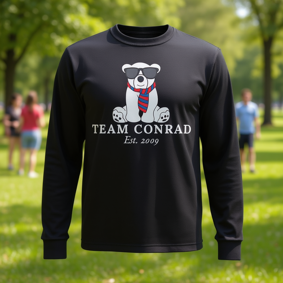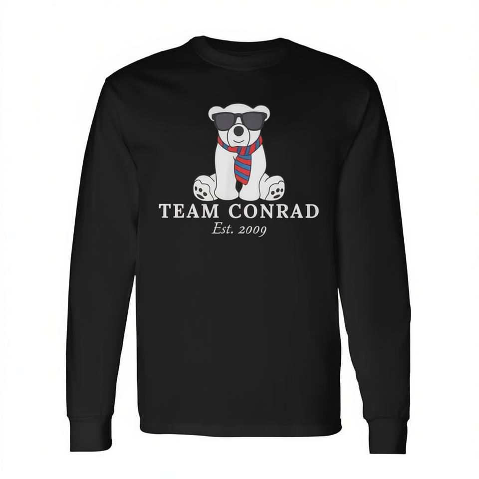 T-shirt a maniche lunghe Team Conrad, girocollo, design promozionale unisex per adulti
