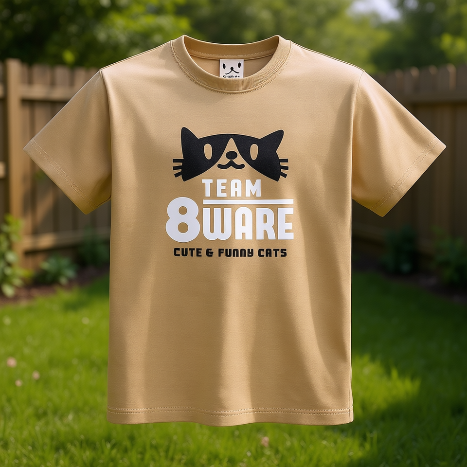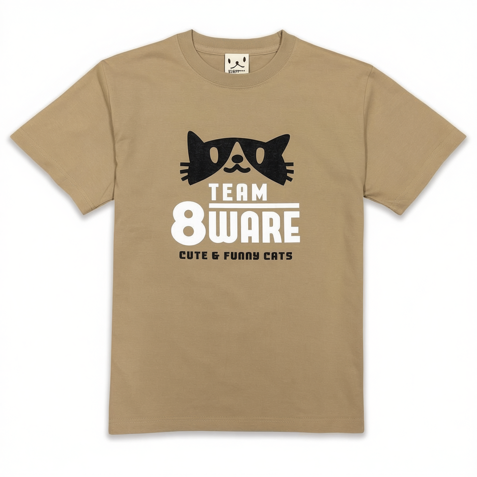 T-shirt Team8ware con stampa gatto, colore Sabbia Kaki, a maniche corte, unisex, abbigliamento promozionale
