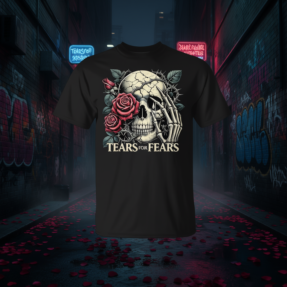 T-shirt estetica Tears for Fears Gothic Skull and Roses, abbigliamento promozionale scuro