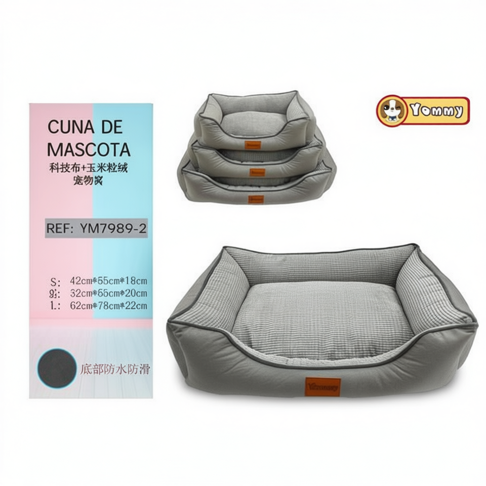 Cucce per Animali Domestici Quadrate in Tessuto Tecnologico e Velluto di Mais Grigio