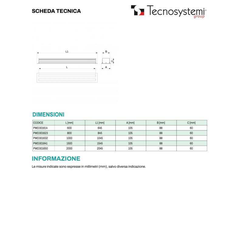 Diffusore di Aromi Lineare in Alluminio a 2 Slot Tecnosystemi per il Ritorno e la Diffusione delle Fragranze