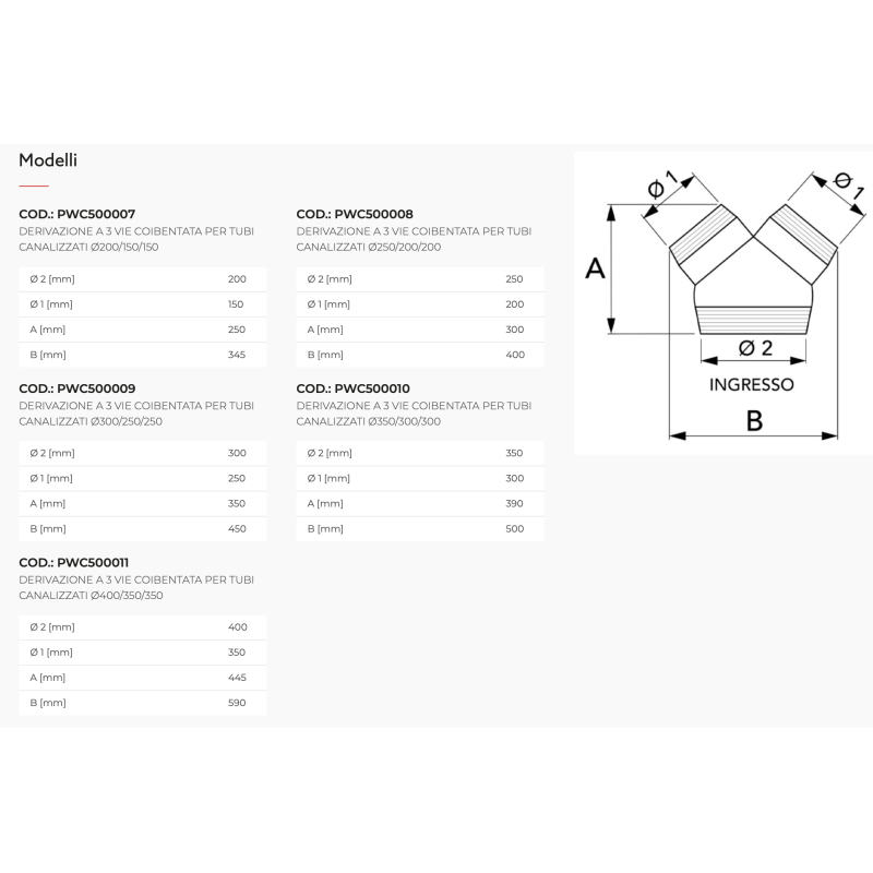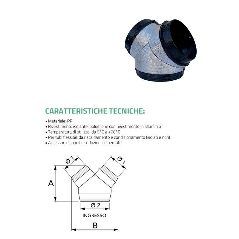 Tecnosystemi Industrial Flexible 3-Way Insulated Air Conditioner Branch for Pipes Ranging 150 to 450 mm HVAC Systems Part