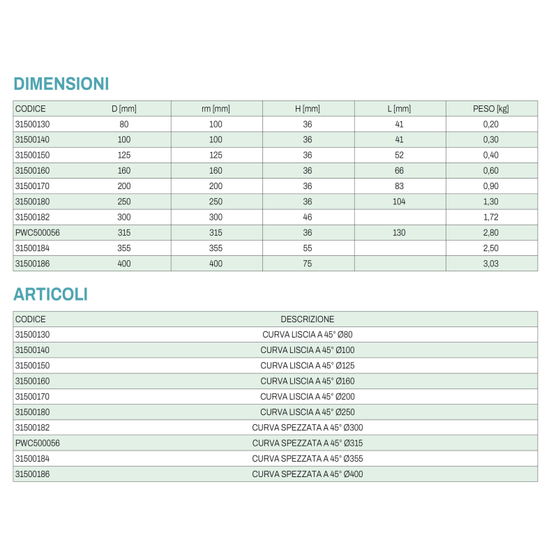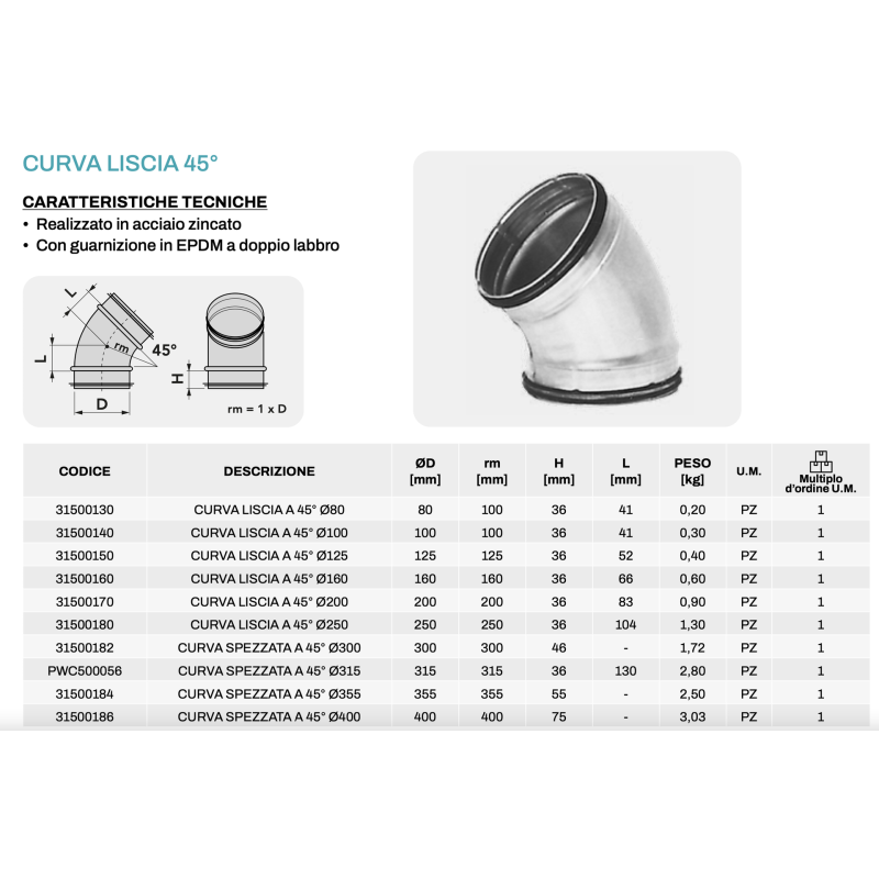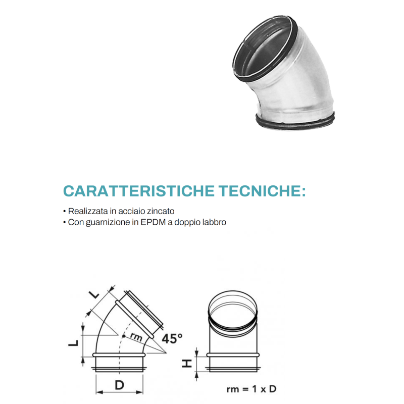 Tecnosystemi 45 Componenti per Sistemi HVAC a Curva Liscia per Condotte Circolari