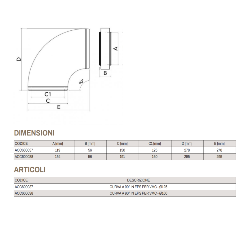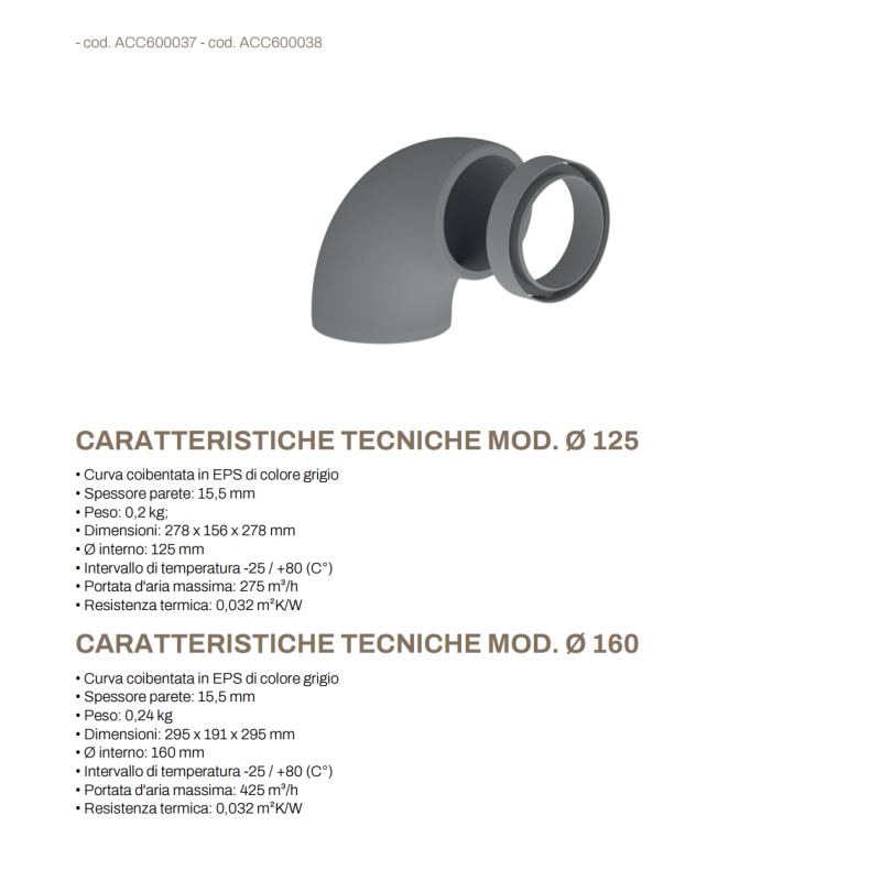 Tecnosystemi Tubo Flessibile a 90 Gradi in EPS per Sistemi HVAC VMC con Diametro 125 e 160