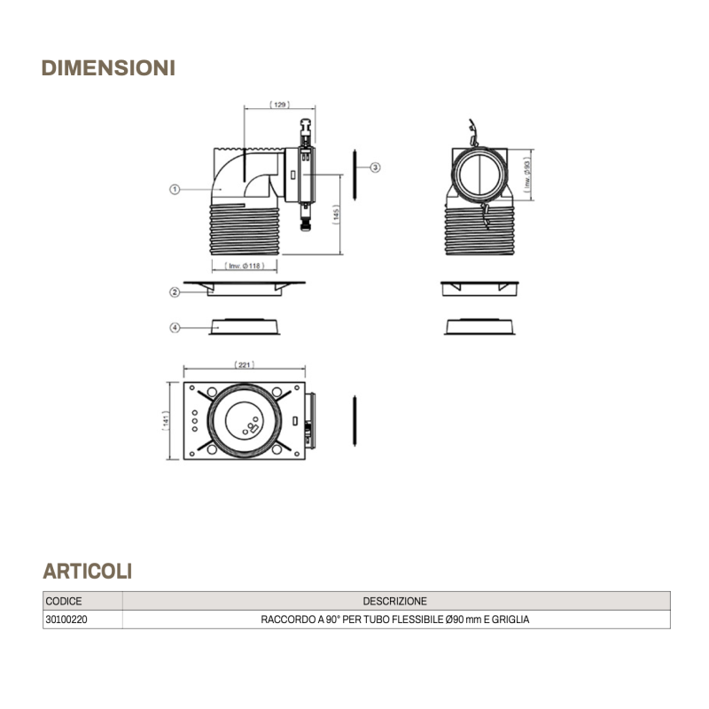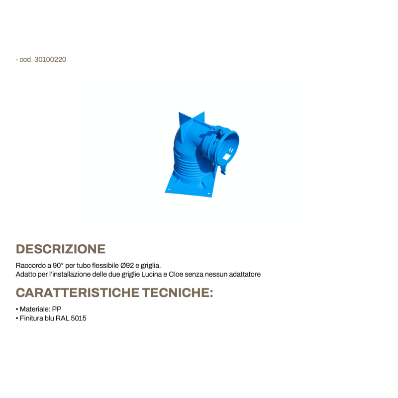 Raccordo Tecnosystemi 90 per Tubi Flessibili da 90 mm, Componente per Sistemi HVAC, Connessione a Griglia 30100220
