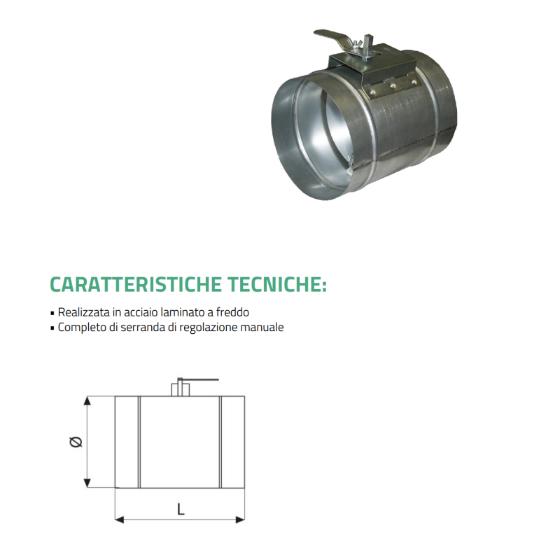 Tecnosystemi Control Damper per condotti circolari, componente per sistemi HVAC e condizionatori d'aria