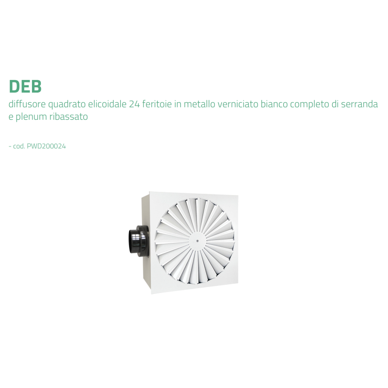 Tecnosystemi DEB Diffusore Quadrato Elicoidale Regolabile a 24 Fessure, Angolo Lama 90°, Acciaio Zincato Verniciato Bianco, Design Minimalista