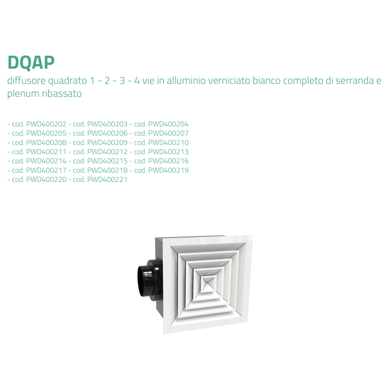Tecnosystemi DQAP Diffusore Quadrato a Tre Vie in Alluminio Verniciato Bianco con Serranda e Plenum Ribassato - Registri e Griglie Completi
