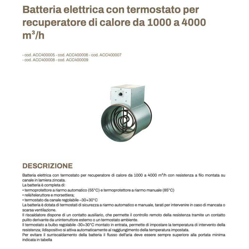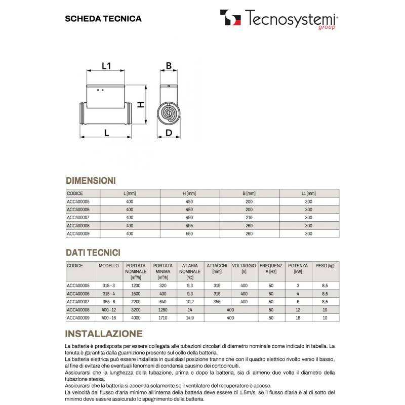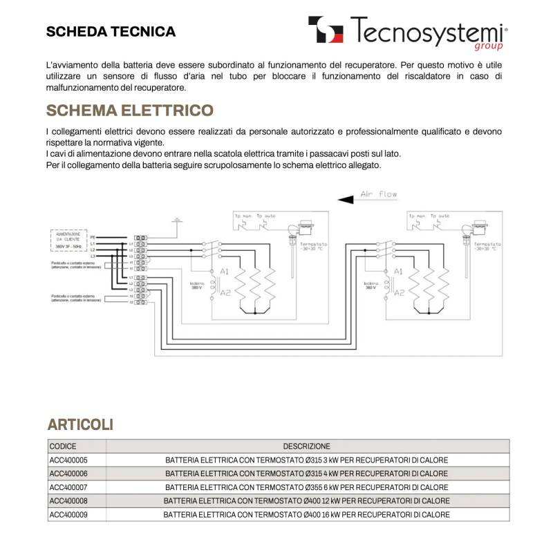 Tecnosystemi Electric Battery with Thermostat HVAC System for Heat Recovery From 1000 to 4000 M/h