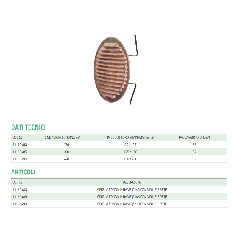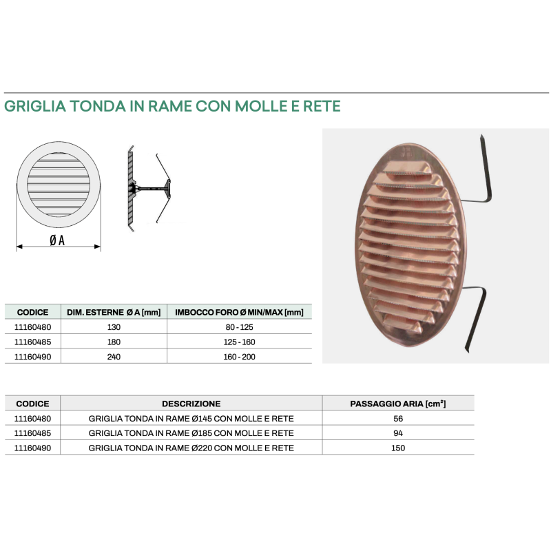 Numero del Modello:tecnosystemi-griglia-tonda-rame