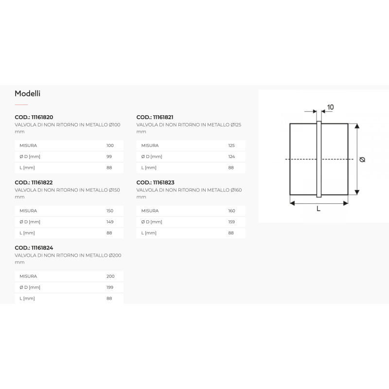 Valvola di Non Ritorno in Acciaio Inox Tecnosystemi per Sistemi HVAC Canalizzati