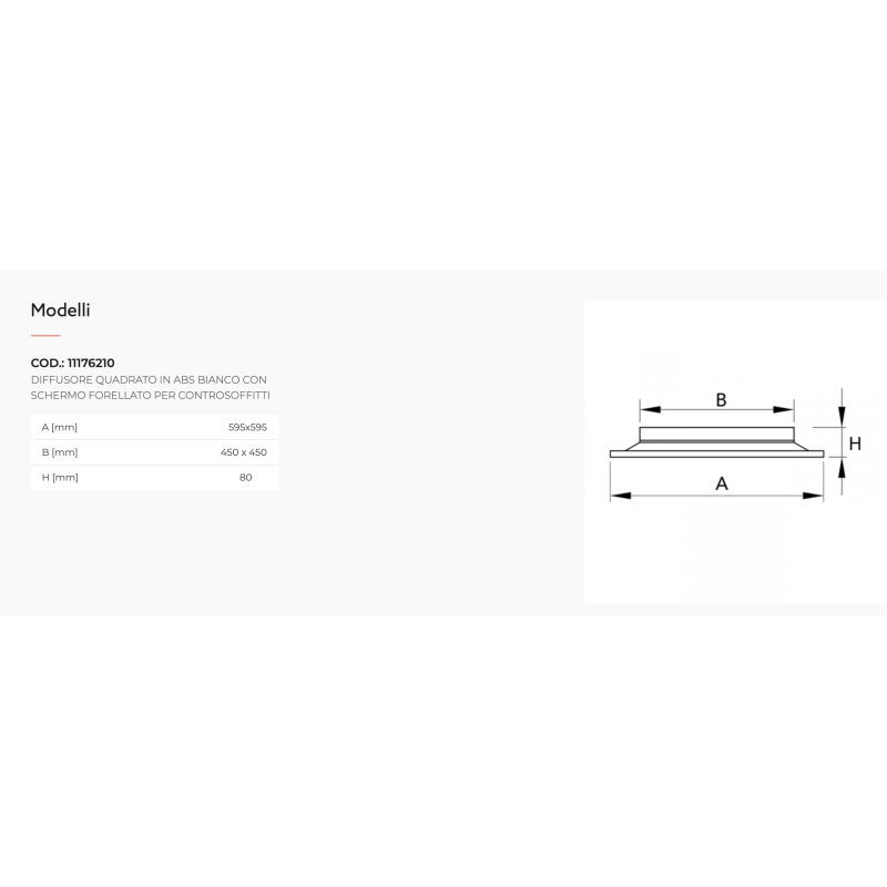 Diffusore Quadrato in Plastica ABS Bianca Tecnosystemi per Condizionatori d'Aria con Schermo Perforato, Prodotto per Sistemi HVAC
