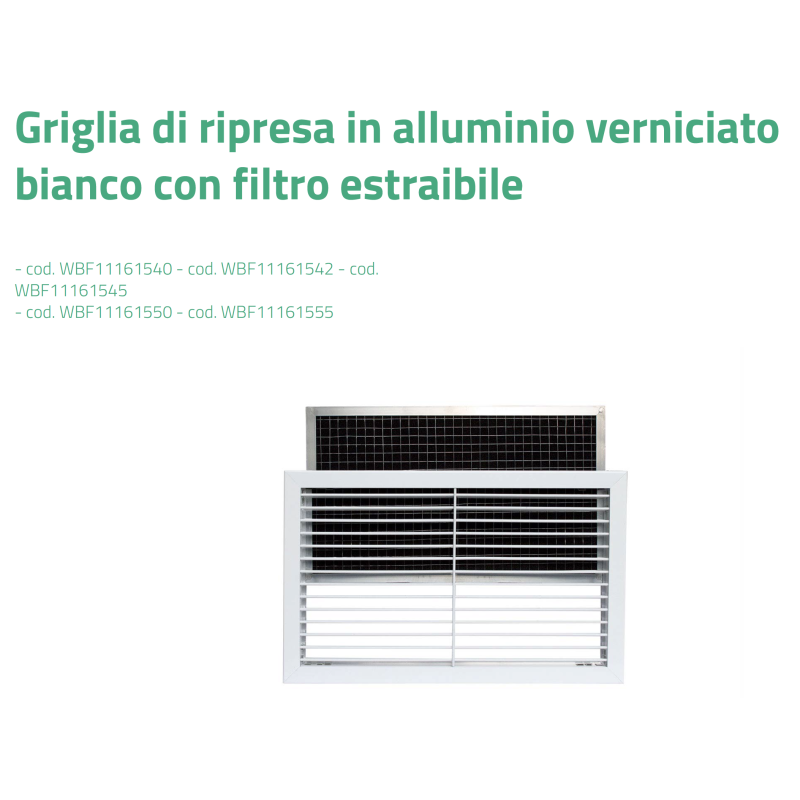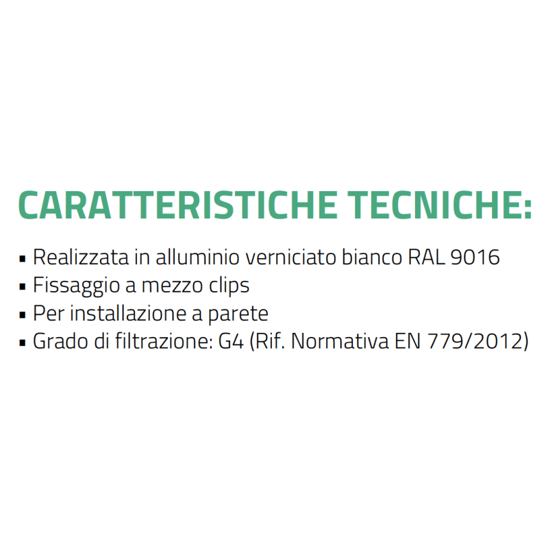 Griglia di Aspirazione in Alluminio Verniciato Bianco Tecnosystemi con Filtro Rimovibile, Design Minimalista, Forma Rettangolare, Facile Installazione per HVAC