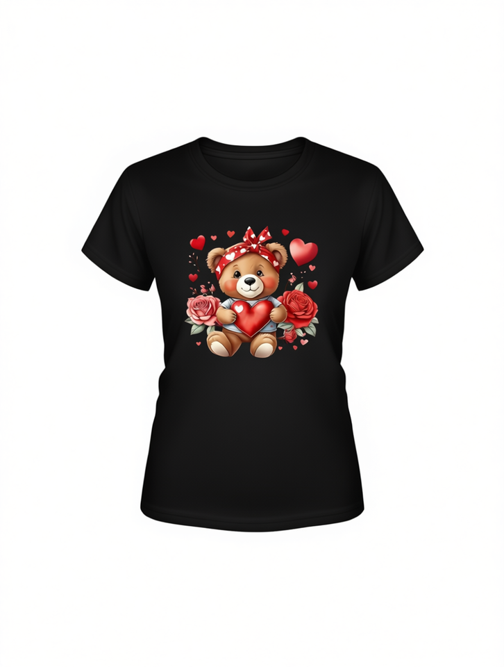 T-shirt da donna con stampa orsetto, manica corta, girocollo, casual estivo, in jersey di poliestere resistente, stampa digitale con motivo a personaggio