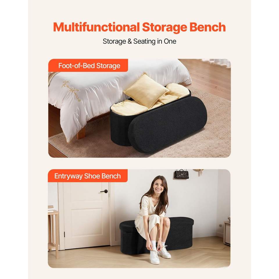 Panca da letto in pile Teddy, grande, pieghevole, imbottita, contenitore ovale, sgabello contenitore pieghevole, pouf e ottoman