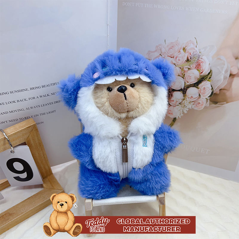 Teddy ISLAND Abbigliamento in Peluche Personalizzato con Cappuccio a Forma di Elefante Blu Autorizzato Globalmente