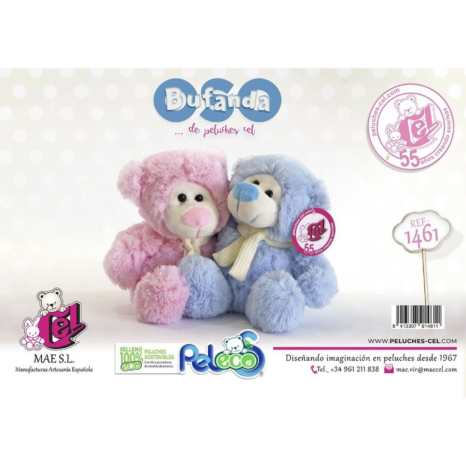 Orsacchiotto con sciarpa rosa e blu 20 cm
