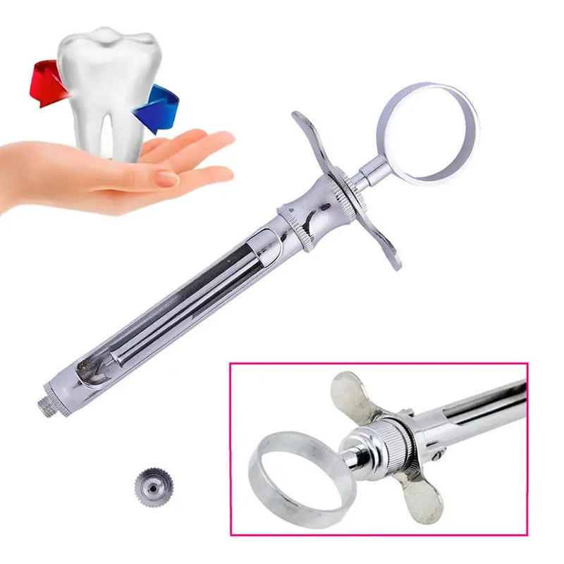 Siringa Dentale Manuale con Punta a Uncino e Punta Affilata per Sbiancamento Dentale, Certificata CE, in Acciaio Inossidabile