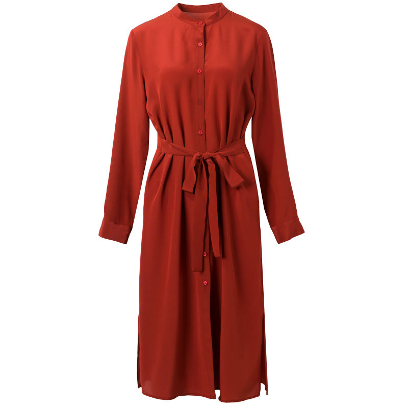 Gonna a vita alta a tinta unita con temperamento a vita alta sottile a manica lunga più abito di seta