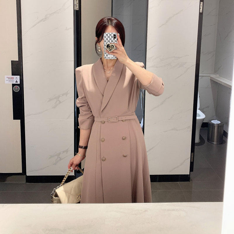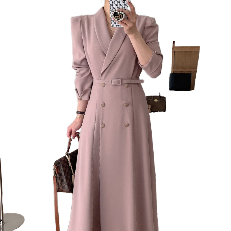 Temperament Waist Double-breasted Large V-neck Long Trench Coat for Women