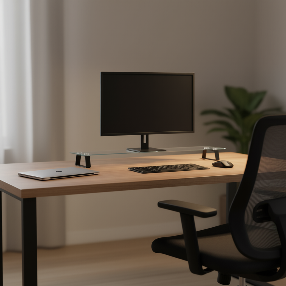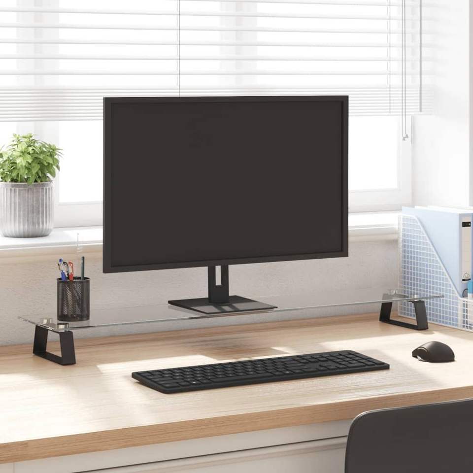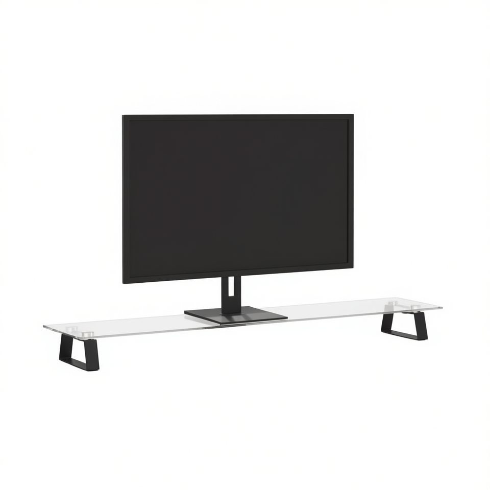 Supporto per Laptop in Vetro Temperato e Metallo 39.4x7.9x3.1 Pollici Nero, Supporto da Tavolo per Monitor