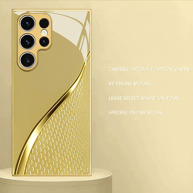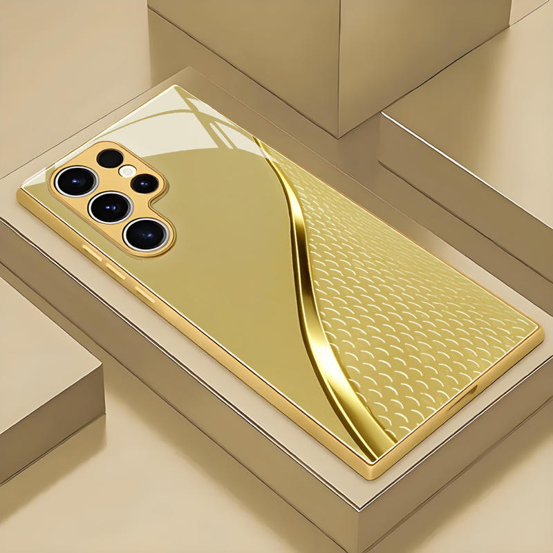 Tempered Glass Phone Case for Samsung Galaxy S26 Ultra S25 Edge S24 S23FE Gold Curved Scale Protective Case.