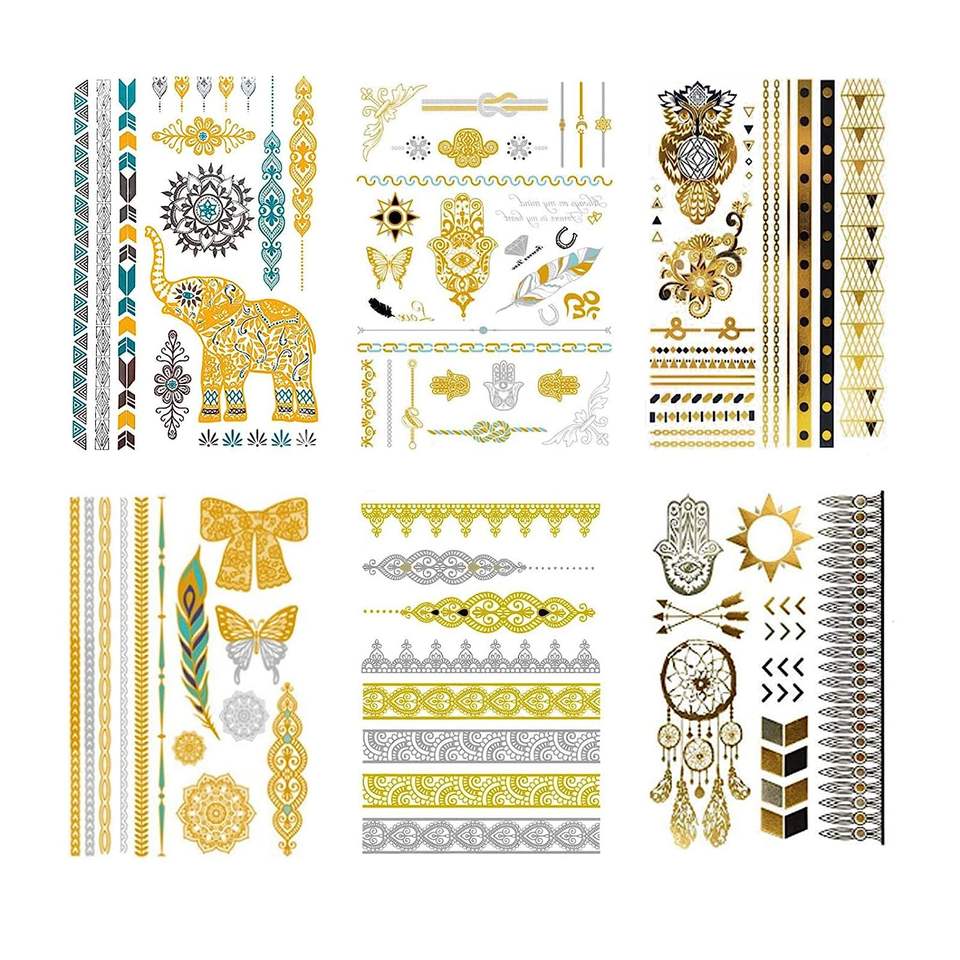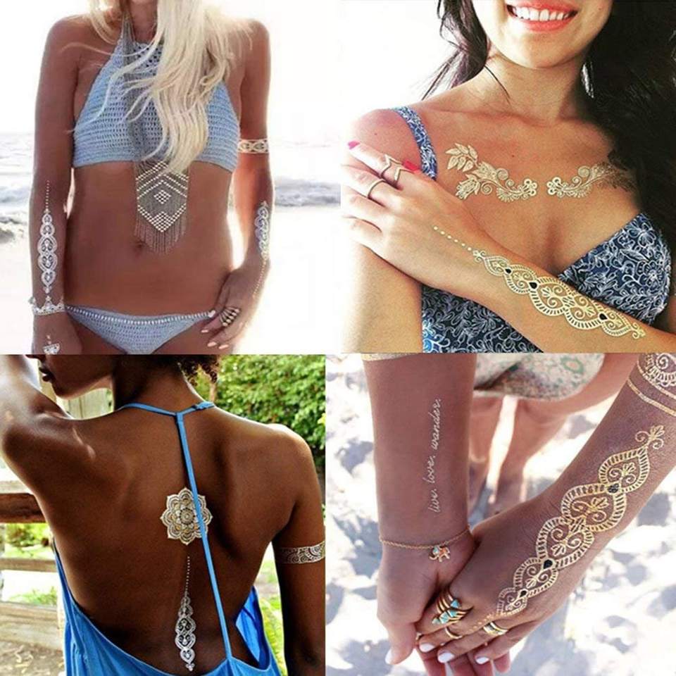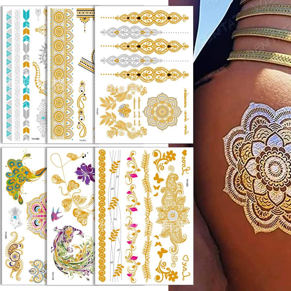 Temporary Metallic Tattoos Gold Silver Shimmer Designs Jewelry Henna Tattoos for Women