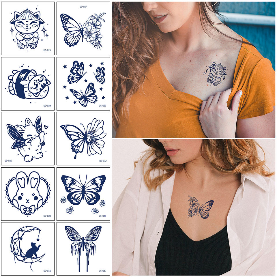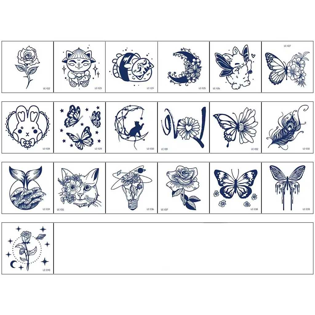Tatuaggi temporanei 19 elementi fiore gatto farfalla adesivi tatuaggi finti per donna uomo trucco corpo adesivi impermeabili