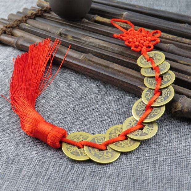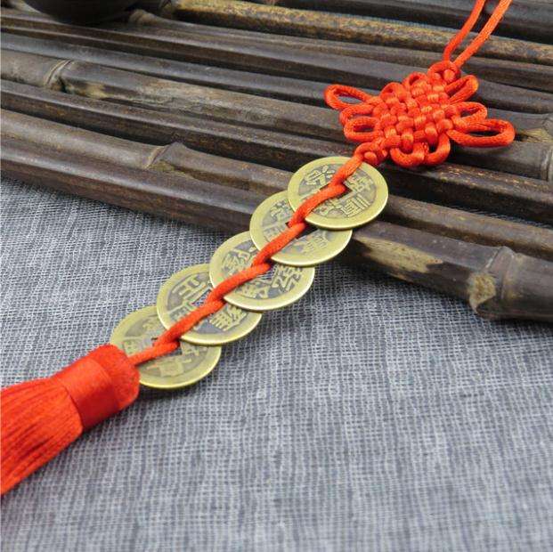 Dieci Imperatore di Denaro Fortunato di Fascino Antico Coin Red Nodo Cinese Regalo Collezione di Monete di Rame Keychain Buona Fortuna