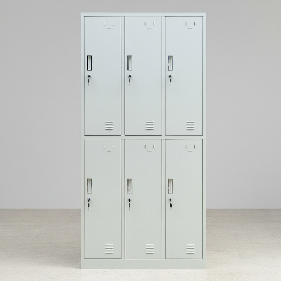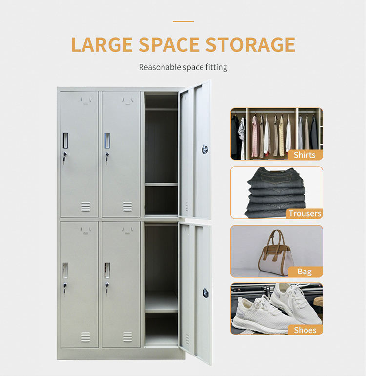 Armadietto in Acciaio a 6 Ante Tengle con Serratura a Codice, Design Smontabile da Parete per Spogliatoi e Deposito Abiti da Lavoro
