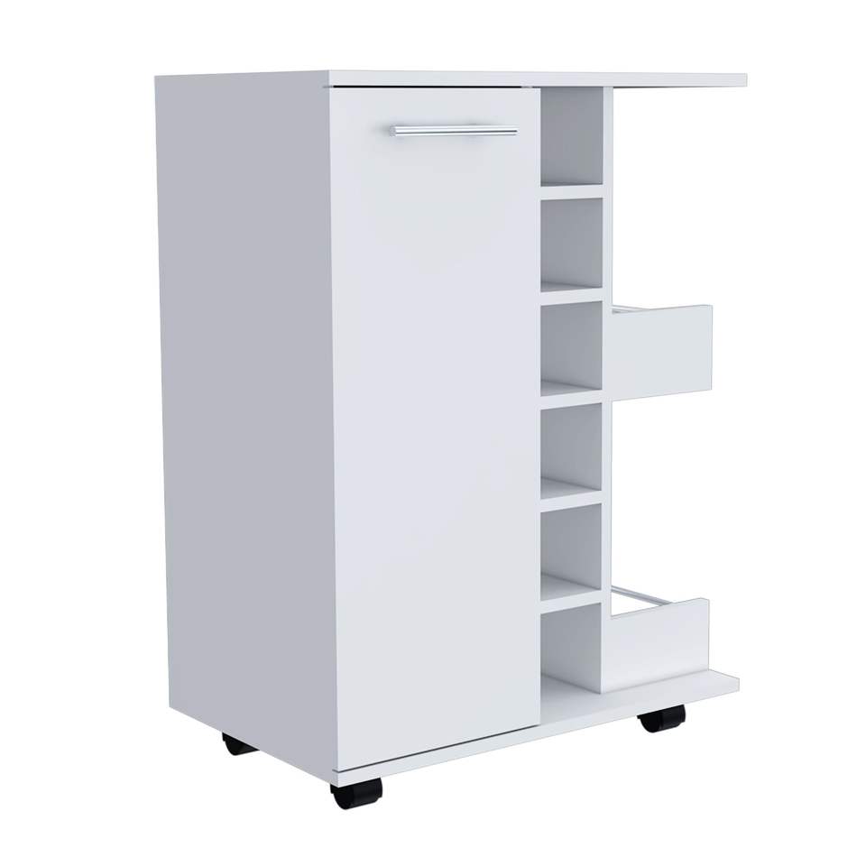Carrello Bar Tennessee Six-Cubbies con Mobile Singolo e Due Ripiani per Conservazione Liquori