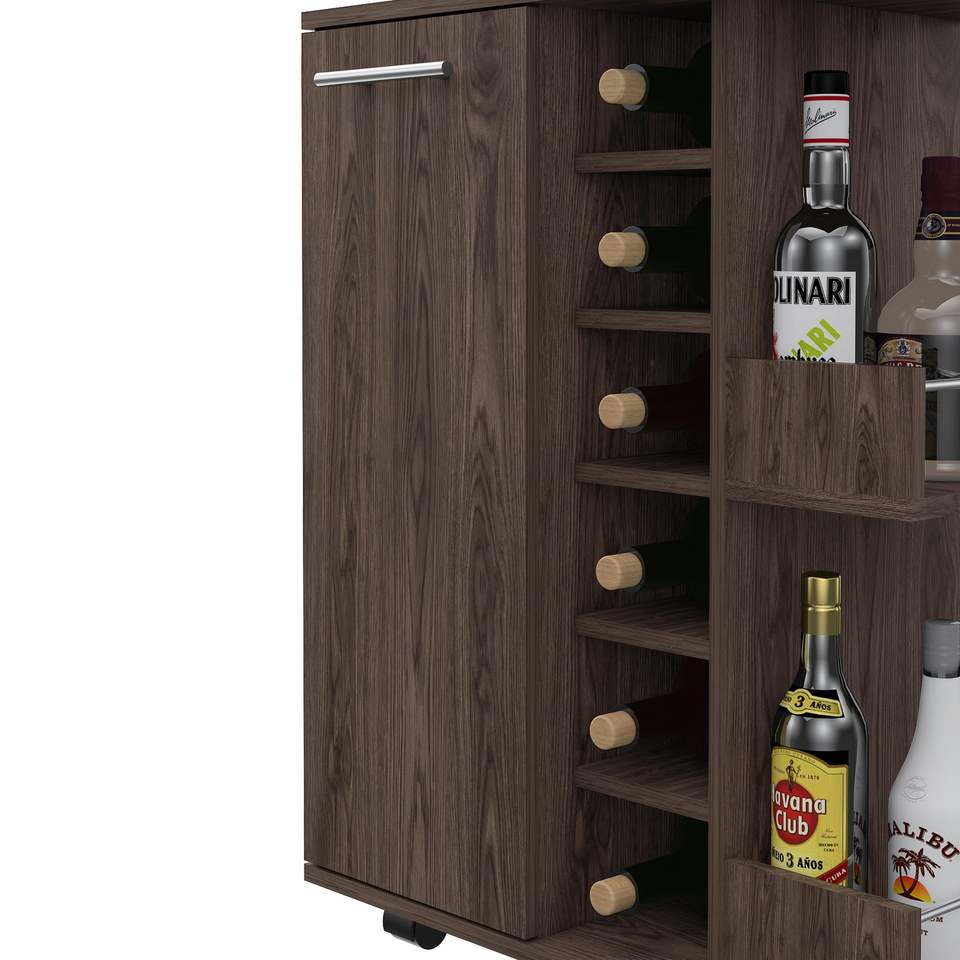 Carrello Bar Tennessee Six-Cubbies con Mobile Singolo e Due Ripiani per Conservazione Liquori
