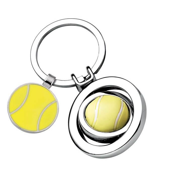 Portachiavi da tennis con ciondolo a forma di moneta, in metallo argentato, design sportivo, per regali e promozioni