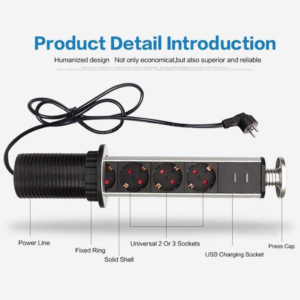 Presa di Corrente Verticale a Scomparsa con Spina EU, Presa da Tavolo per Cucina/Ufficio con Cavo Retrattile