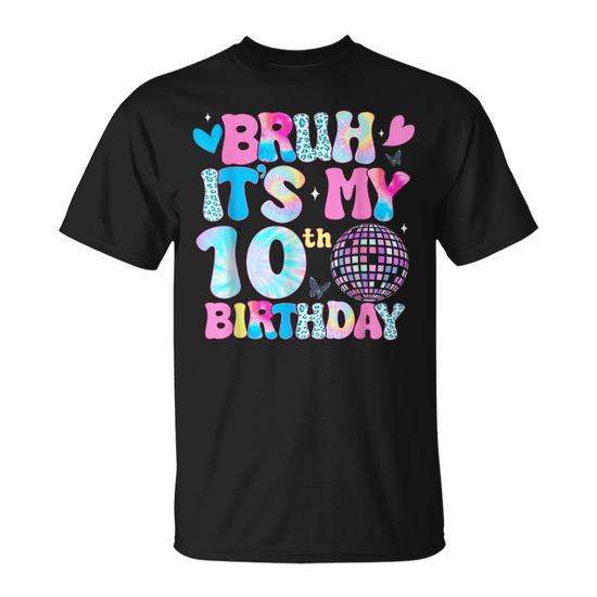 Maglietta per la festa del decimo compleanno per bambini, unisex, a maniche corte, girocollo, in cotone, divertente, per feste