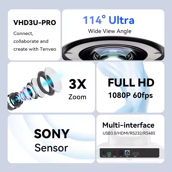 Telecamera per Videoconferenze Tenveo Professionale VHD3H con Zoom 3x - 1080P PTZ USB+HDMI per Sale Riunioni e Diversi Sistemi di Streaming