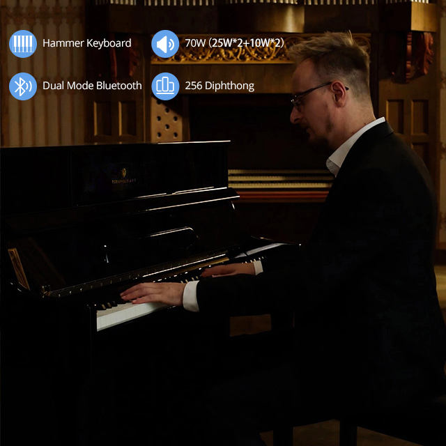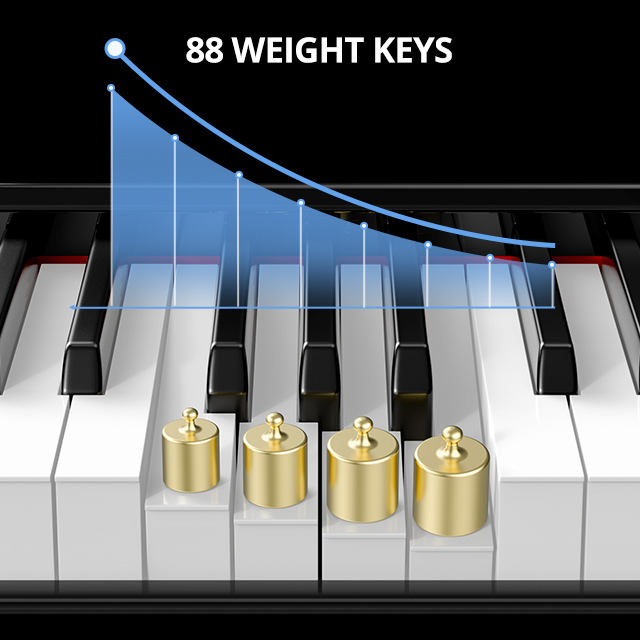 Azione del martello, Chiavi ponderate, Altoparlante integrato, Di registrazione, Cuffia Jack, Ingresso microfono, Effetti digitali, Sound boostCaratteristica