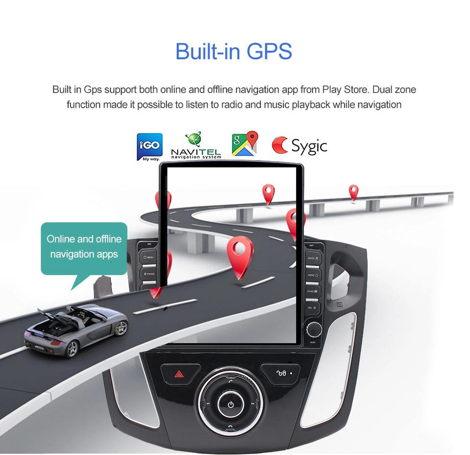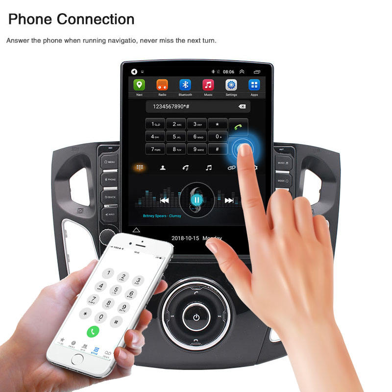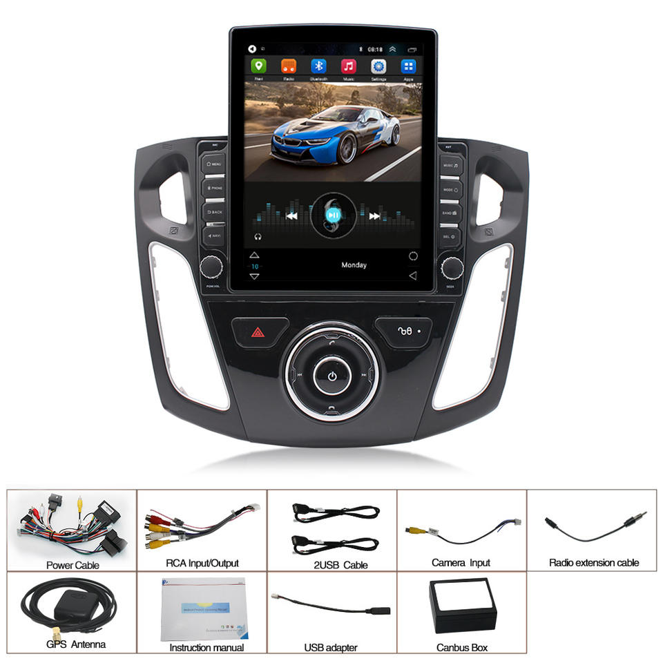 Stereo Multimediale Stile Tesla con Android per Ford Focus 2011 2012 2013 2014 2015, Lettore DVD per Auto, Navigatore GPS e Radio