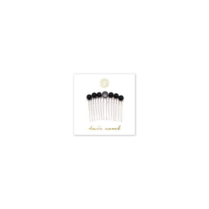 Tessa Black Onyx & Rhodium Hair Comb Elegant Hair Accessory