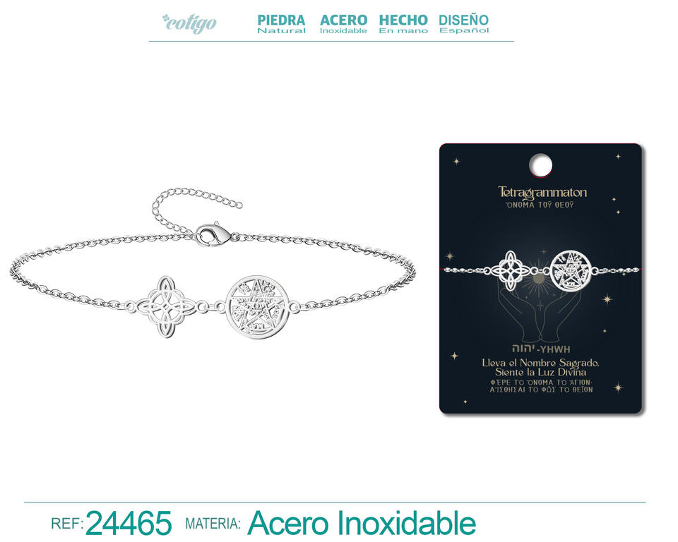 Tetragrammaton Witch's Knot Bracelet Silver-Colored Stainless Steel Lucky and Protective Amulet Fashion Pendant Necklace
