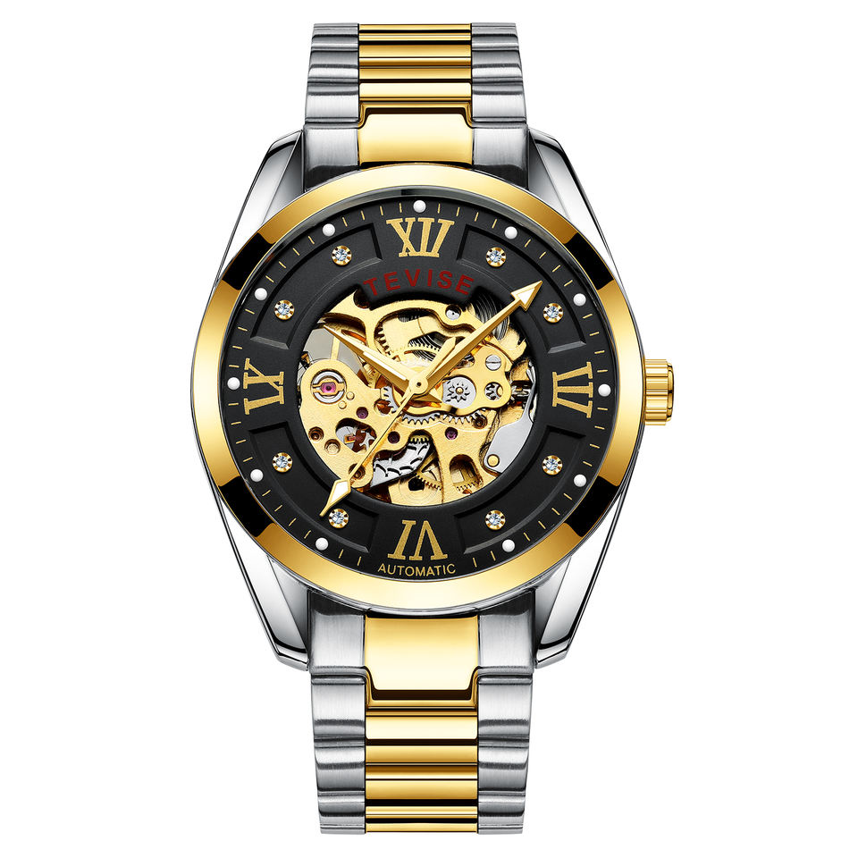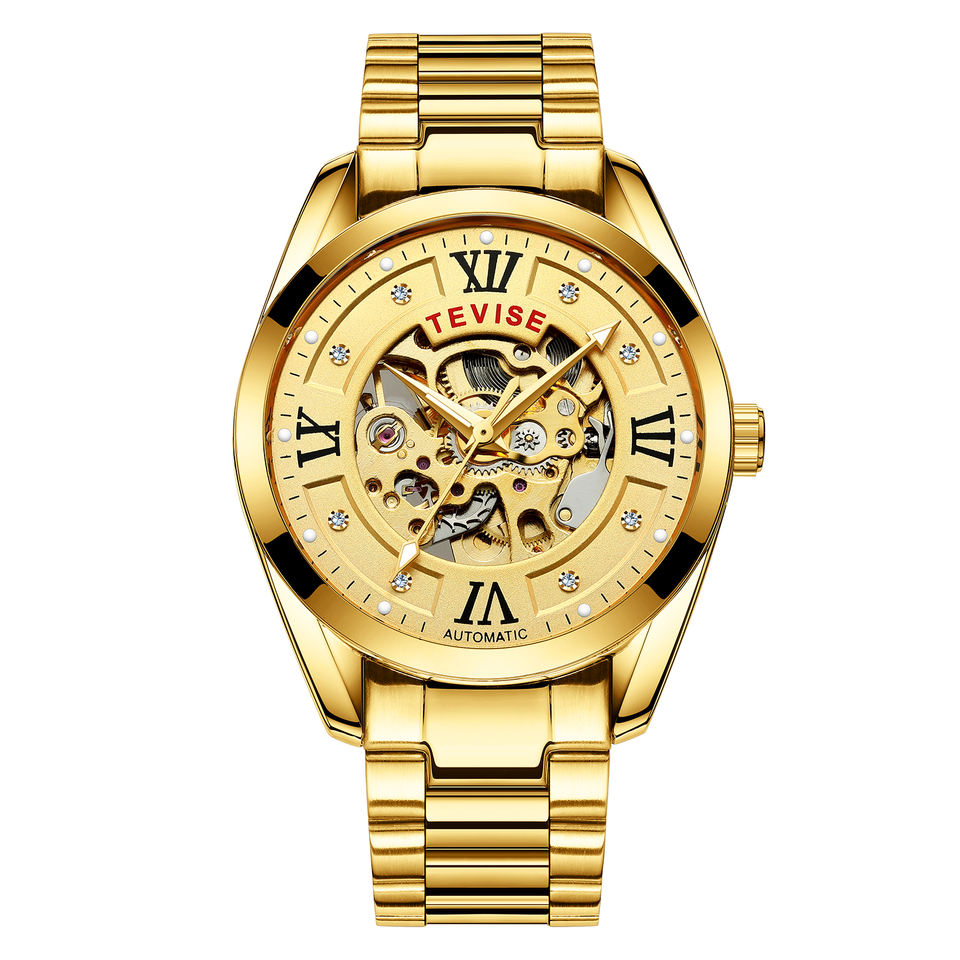 Tevise 795D Hollow Mechanical Wrist Watches Mens Golden Minimalist Business Roman Skeleton