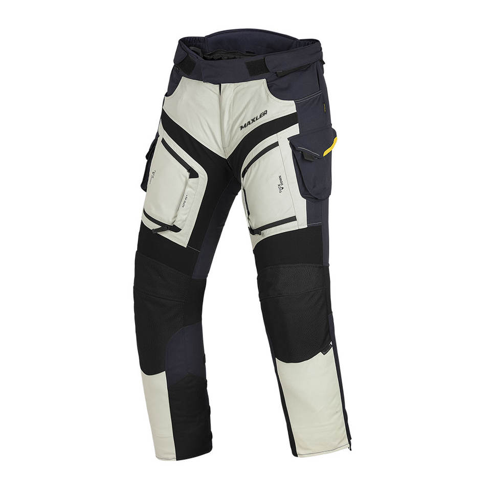Textile motorbike riding trousers shaped for comfort driven touring with CE level 1 knee arrmor