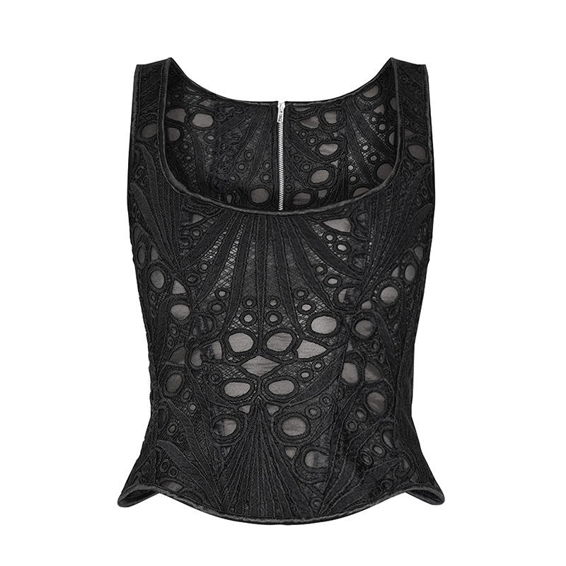 Corsetto con collo quadrato floreale trasparente testurizzato top Crop scavati in maglia alla moda