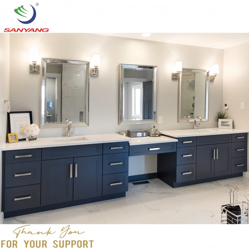 Thailand American Frame Solid Wood Kitchen Cabinets Factory Wholesale Flat Pack RTA Blue Furniture Kitchen Cabinet With Island